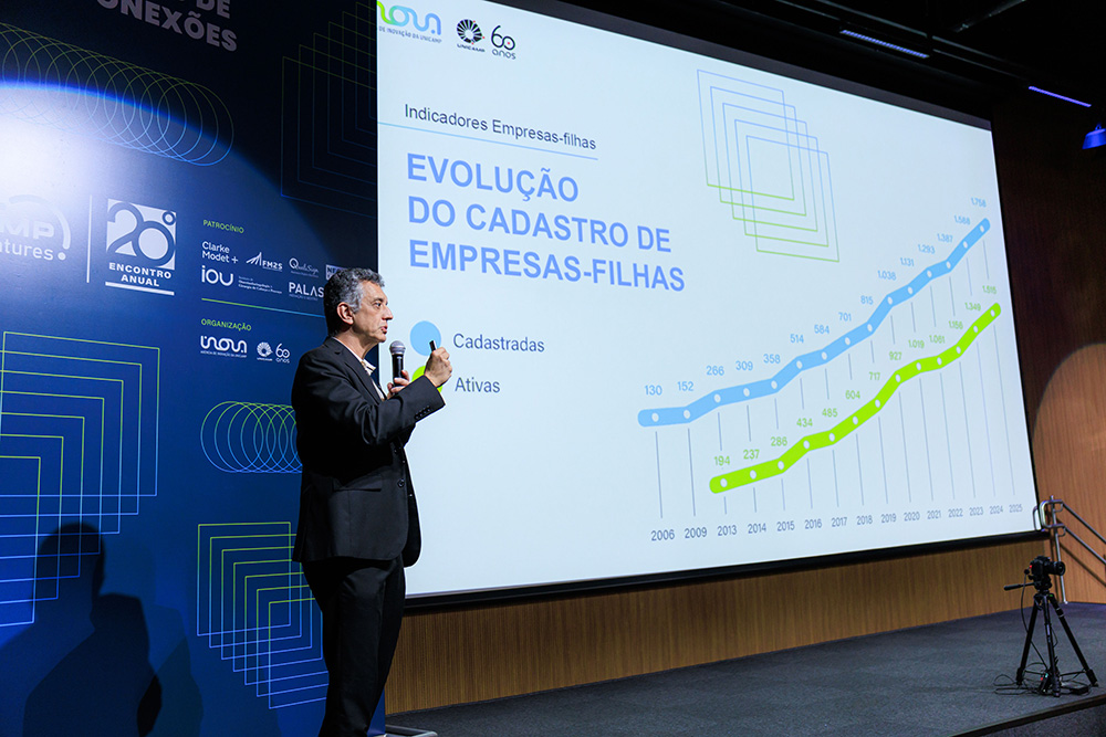 Durante a cerimônia, o professor doutor Renato Lopes, diretor-executivo da Inova Unicamp, fez o lançamento do Relatório de Empresas-filhas da Unicamp e apresentou os novos números do mapeamento realizado pela Inova Unicamp com exclusividade.
